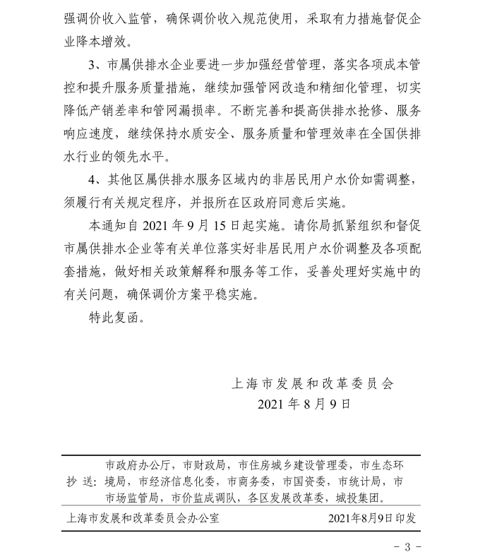 滬發(fā)改價(jià)管〔2021〕36號(hào) 《關(guān)于調(diào)整市屬供排水企業(yè)服務(wù)區(qū)域非居民用戶水價(jià)的復(fù)函》